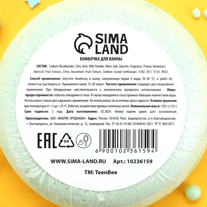 Бомбочка для ванны, 120 г, аромат бабл-гама, TeenBee
