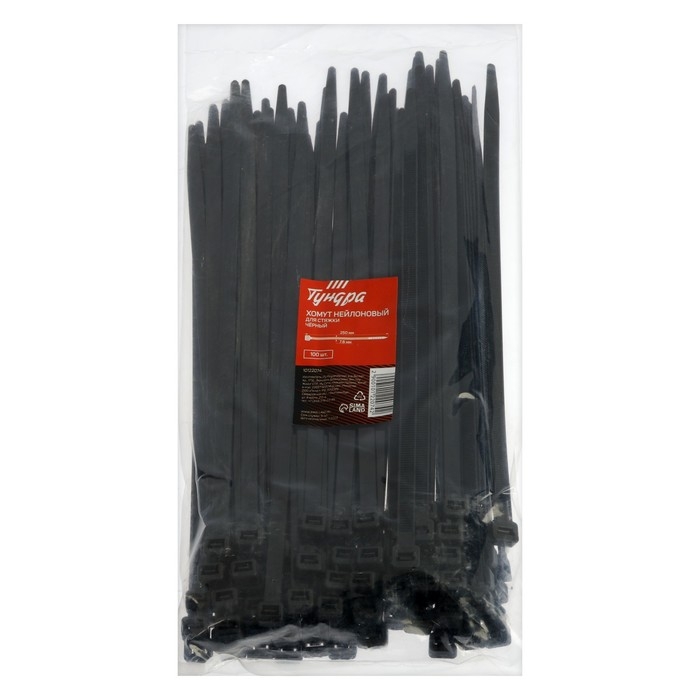 Хомут нейлоновый ТУНДРА krep для стяжки, 7.6х250 мм, черный, в упаковке 100 шт.