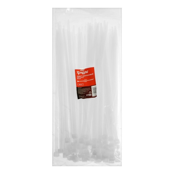 Хомут нейлоновый ТУНДРА krep для стяжки, 7.6х300 мм, белый, в упаковке 100 шт.