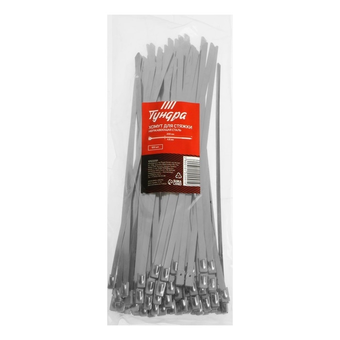 Стяжки из нержавеющей стали ТУНДРА, 4.6x200 мм, 100 шт.