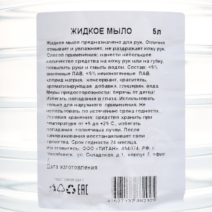 Жидкое мыло TITAN строительное — это высокоэффективное и экономичное средство для очистки и дезинфекции рук после работы с различными материалами и инструментами. Оно обладает мощными очищающими свойствами, которые помогают удалять грязь, масло и другие загрязнения, оставляя руки чистыми и свежими. Мыло имеет концентрированную формулу, поэтому одного флакона объёмом 5 литров хватает на длительное время.