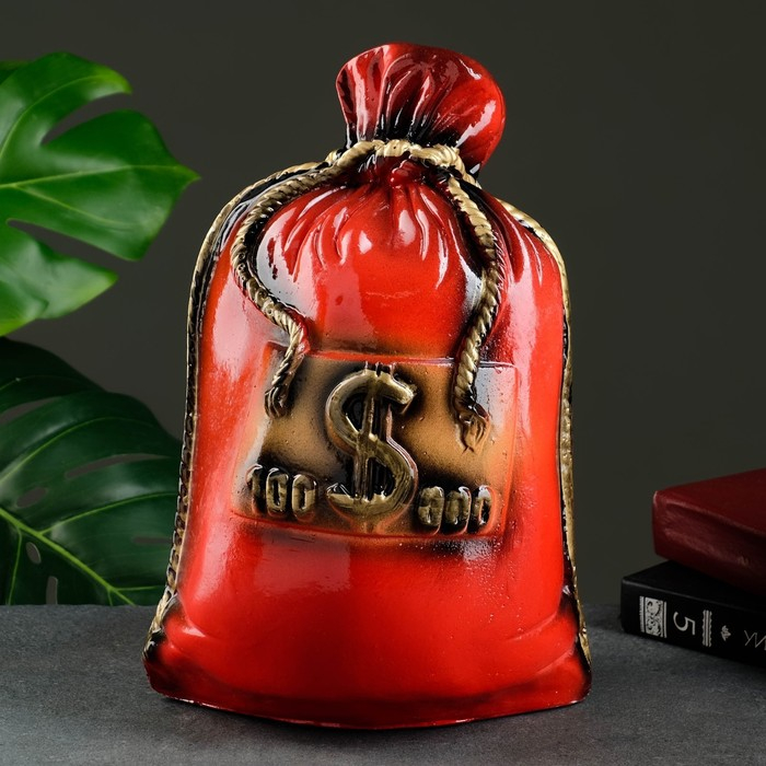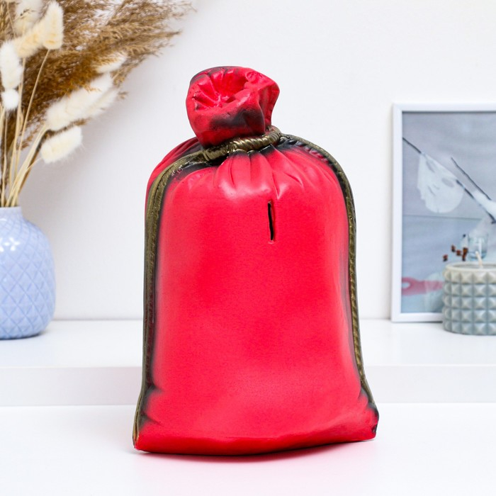 Копилка "Мешок сто тысяч" красный, 14х22х32см