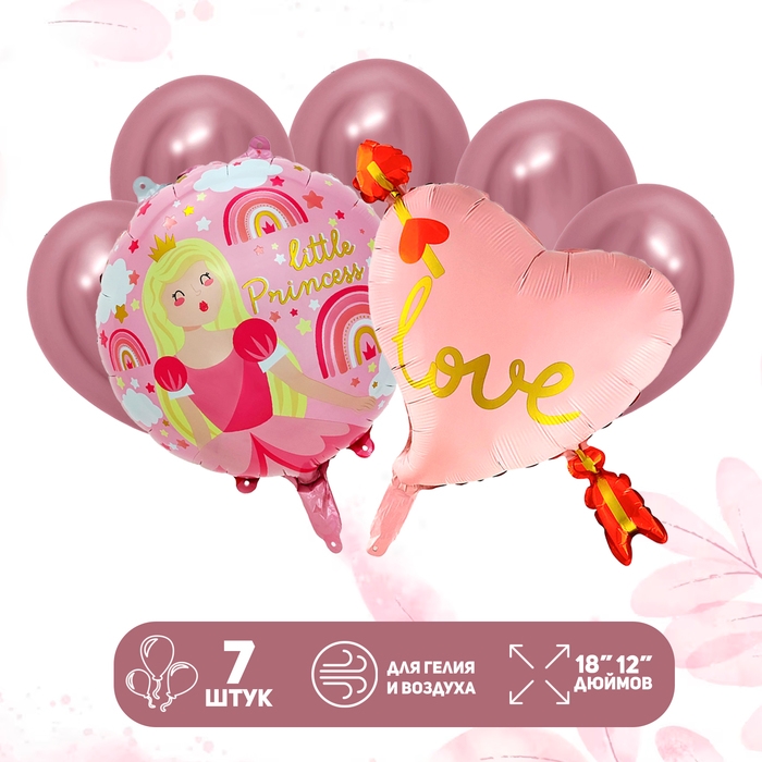 Набор шаров «Принцессе», латекс, фольга, 7 шт.