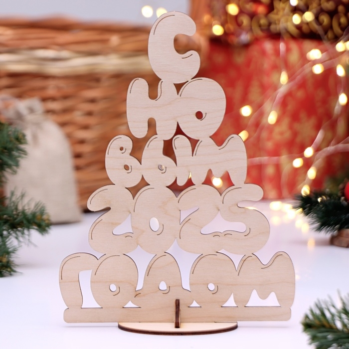 Новый год. Деревянная Подставка с символом года "С Новым 2025 годом", 15,8 х 21,3 х 8 см