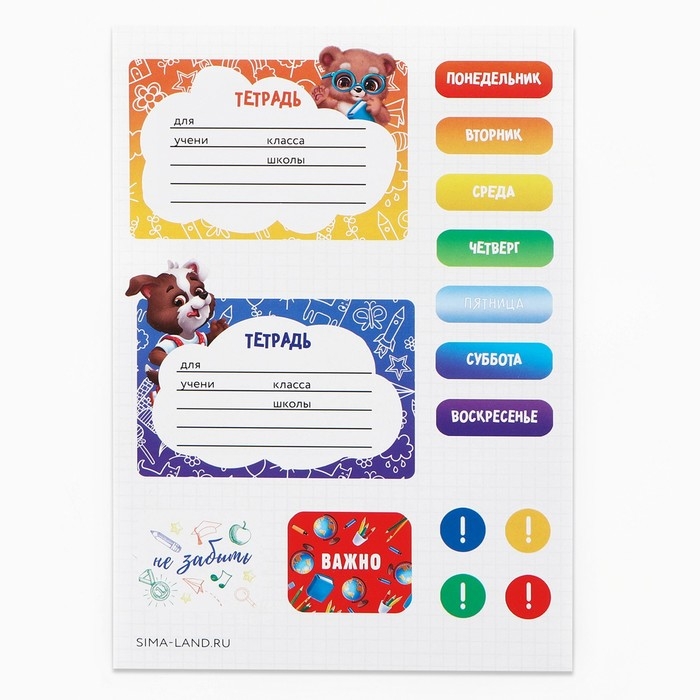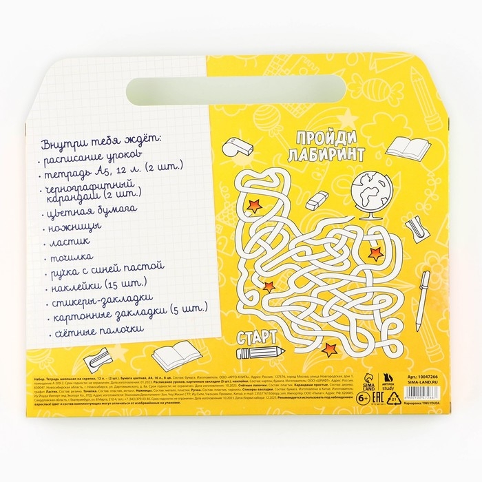 Закладка, Карандаши, Ластик, Наклейки, Ножницы, Расписание, Ручка, Счётные палочки, Тетрадь, Цветная бумага