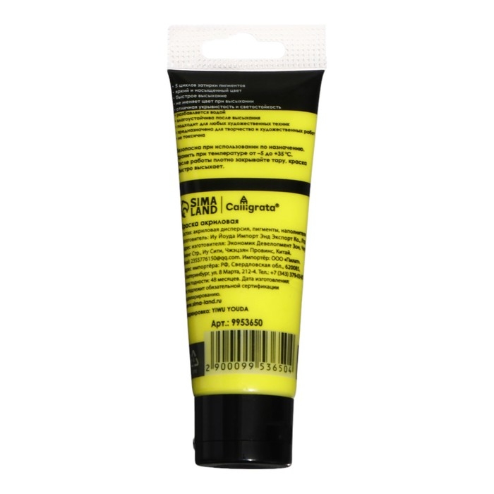 Краска акриловая матовая в тубе 75мл CALLIGRATA, КМ002, Желтая лимонная, пантон 3945С