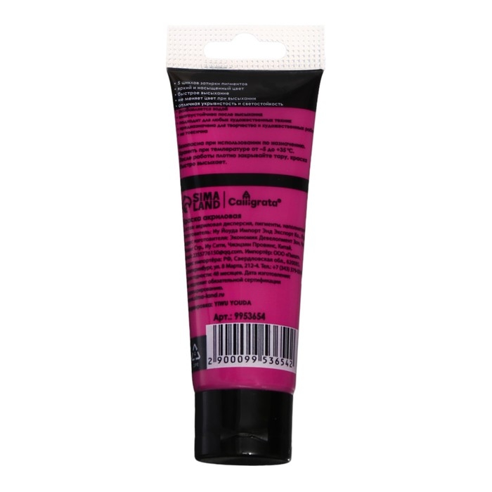 Краска акриловая матовая в тубе 75мл CALLIGRATA, КМ019, Розовая, пантон 235С