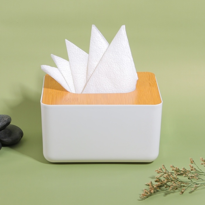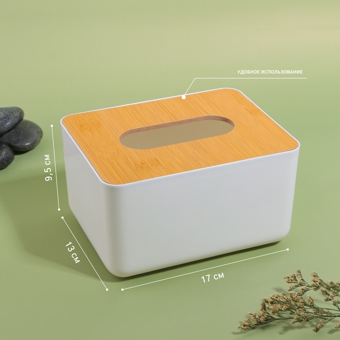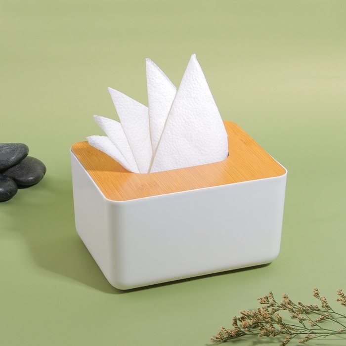 Органайзер для хранения салфеток «BAMBOO», 17 × 13 × 9,5 см, цвет белый/коричневый