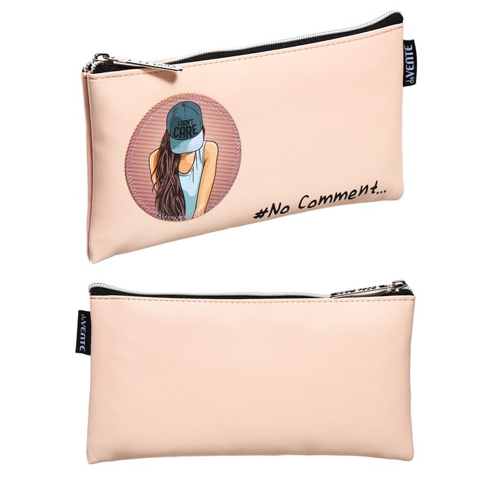 Пенал "deVENTE. No Comment" 21,5x11x1 см, плоский для 40 предметов, на молнии, матовая антивандальная искусственная кожа до -40C, аппликация из искусственной кожи, с подкладом
