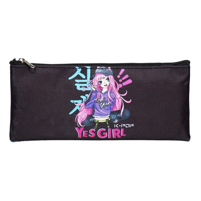 Пенал мягкий, 1 отделение, 90 х 215 х 10 мм, плоский, Attomex "Yes Girl" чёрный 7024425