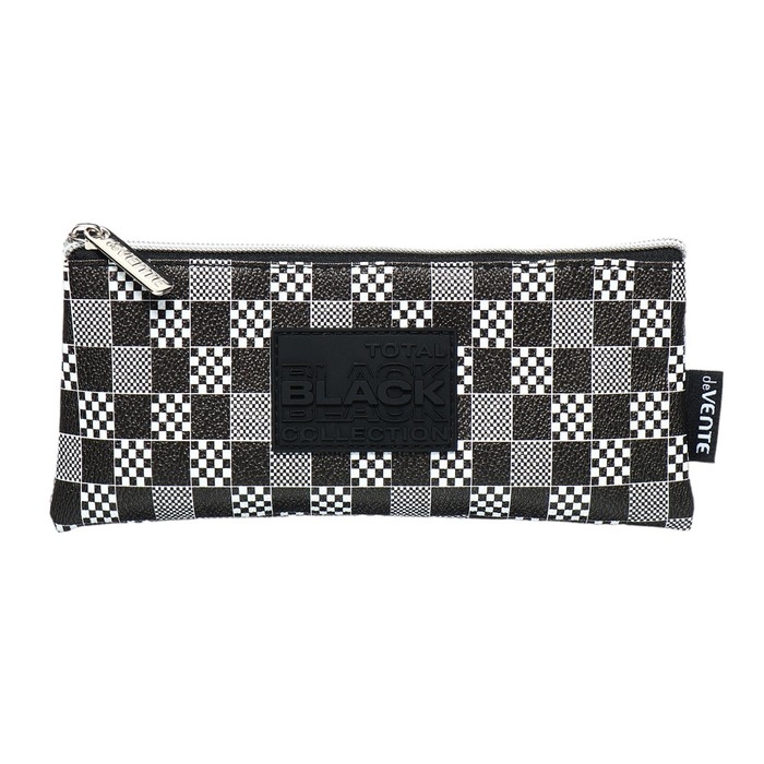 Пенал "deVENTE. TOTAL BLACK" 21,5x9x1 см, плоский для 35 предметов, на молнии, антивандальная искусственная кожа до -40C, каучуковая аппликация, с подкладом
