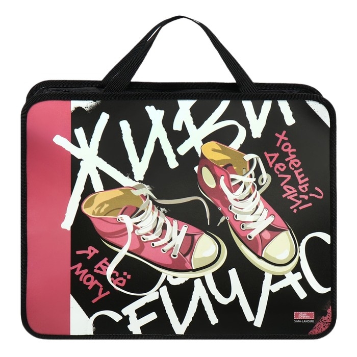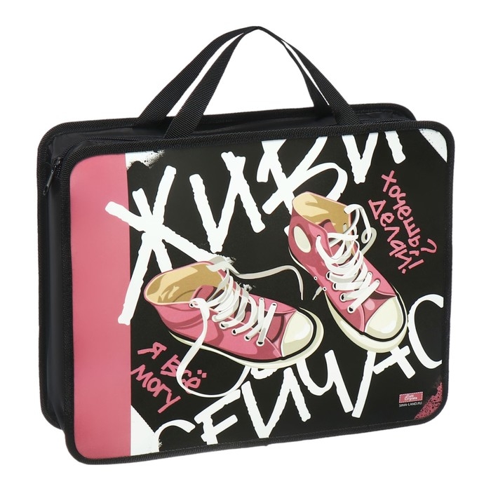 Папка с ручками А4, 330 х 260 х 75 мм, пластиковая, ручки-тесьма, Calligrata "Кеды"