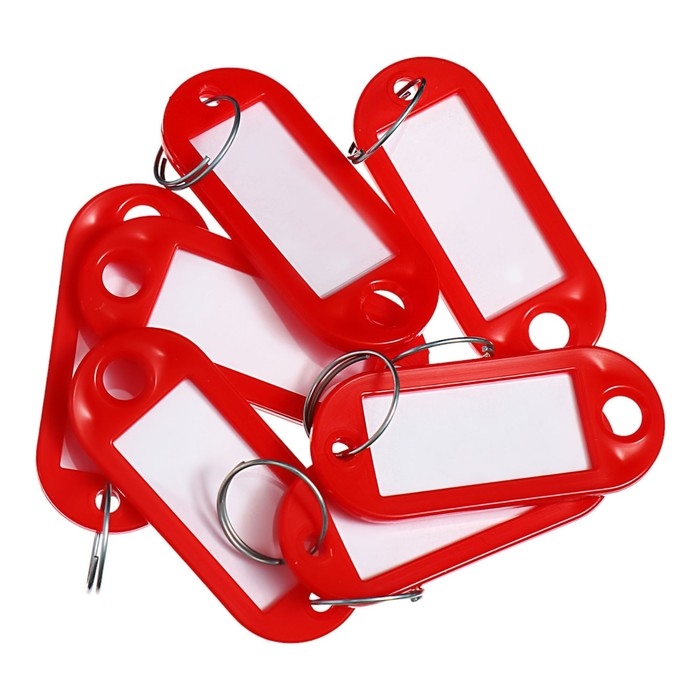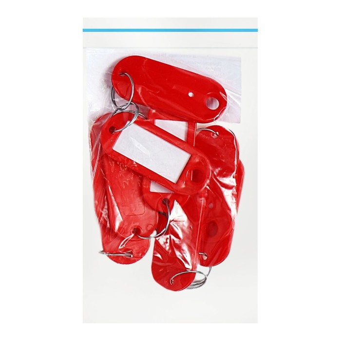 Брелоки для ключей с информационным окном и бумажной вставкой для пометок. Размер брелока 52 х 23 мм, размер окна 36 х 18мм – предназначен для нанесения маркировки. Защитная пленка размером 18 х 36 мм из прозрачного полиэтилена служит для предохранения бумажной вкладки. Материал - мягкий пластик. Упаковка по 10 штук, цвет - красный. Корпус изготовлен из гибкого пластика, что увеличивает срок службы брелока для ключей.