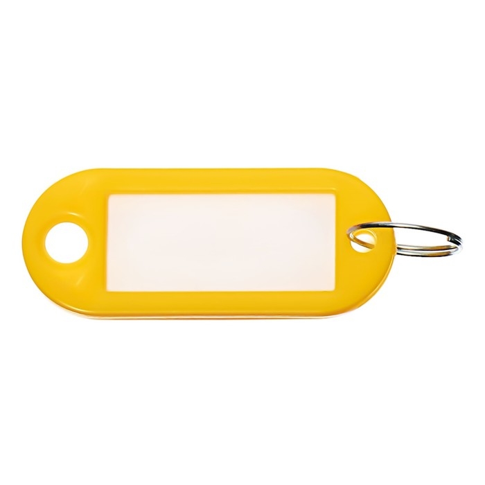 Брелоки для ключей с информационным окном и бумажной вставкой для пометок. Размер брелока 52 х 23 мм, размер окна 36 х 18мм – предназначен для нанесения маркировки. Защитная пленка размером 18 х 36 мм из прозрачного полиэтилена служит для предохранения бумажной вкладки. Материал - мягкий пластик. Упаковка по 50 штук, цвет - желтый. Корпус изготовлен из гибкого пластика, что увеличивает срок службы брелока для ключей.