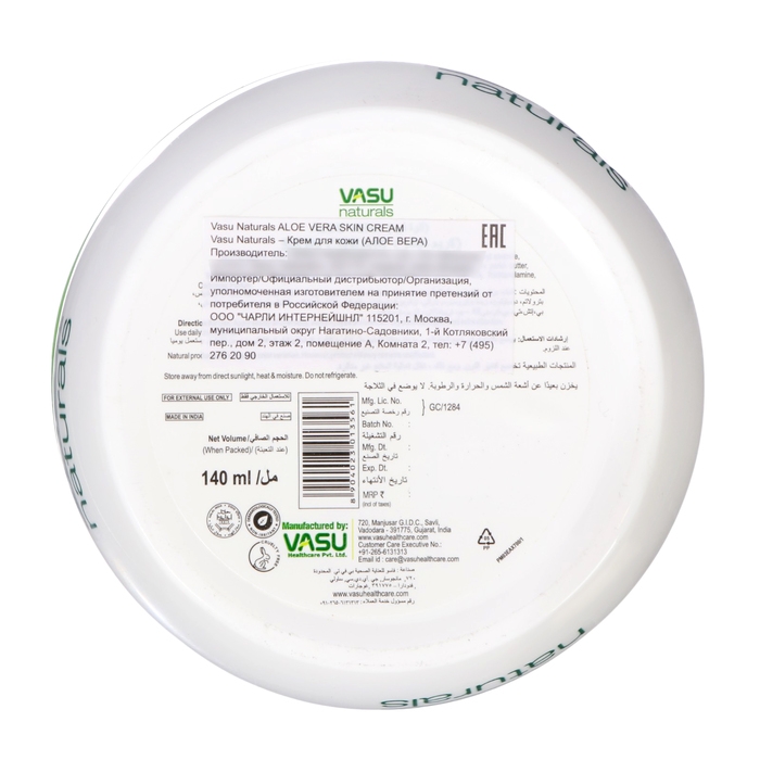 Крем для кожи Vasu "Алое Вера", 140 мл