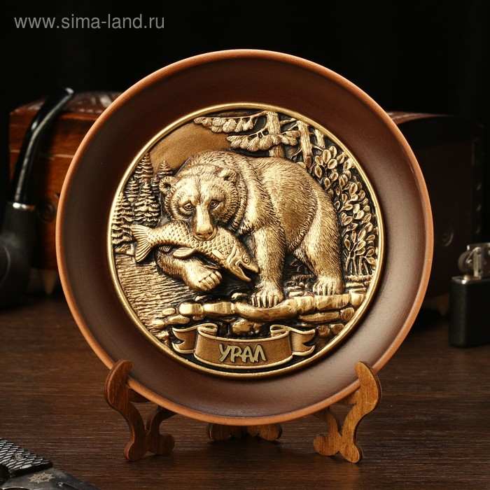 Тарелка сувенирная "Медведь с рыбой", керамика, гипс, d=16 см