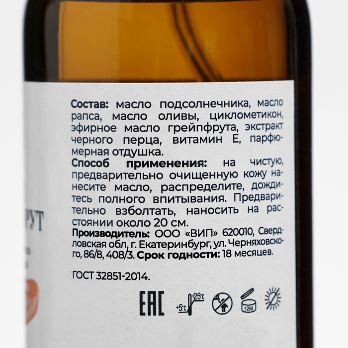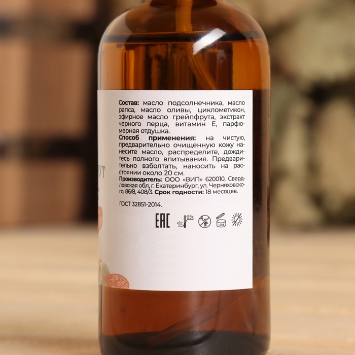 Масло для тела сухое после бани и душа "Перец и грейпфрут" против целлюлита 150 мл