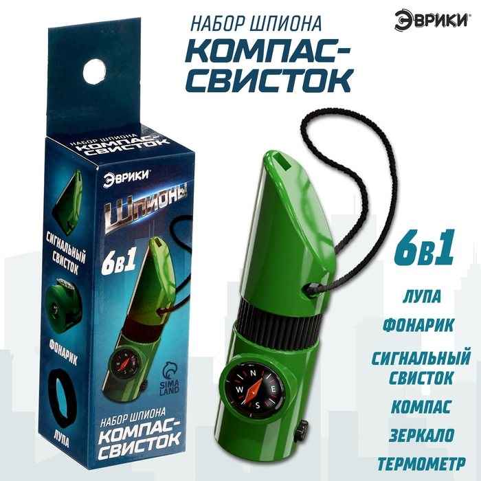 Набор героя «Разведчик», 6 в 1: свисток, компас, фонарик, термометр, зеркало, лупа