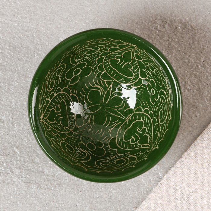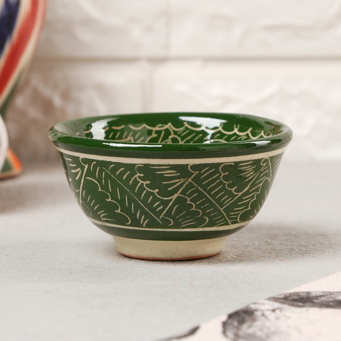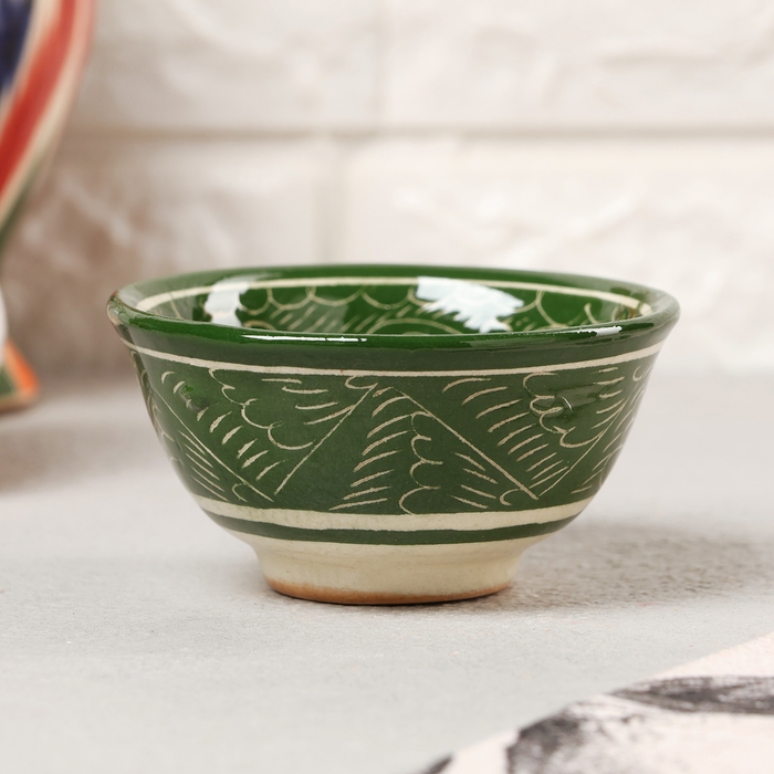 Пиала Риштанская керамика, зеленая, 8,5 см, малая коньячная,