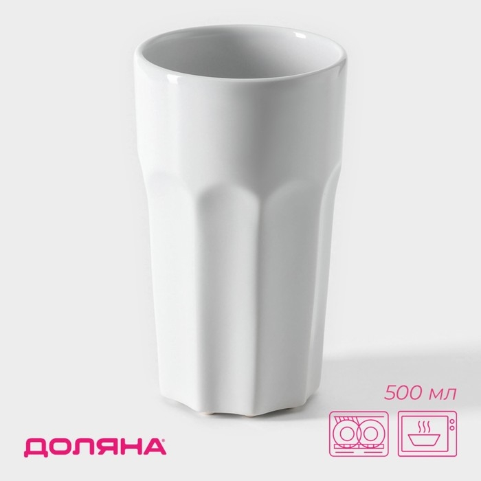 Стакан керамический Доляна «Классика», 500 мл, 8,8×14,7 см, цвет белый