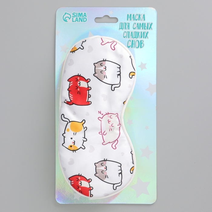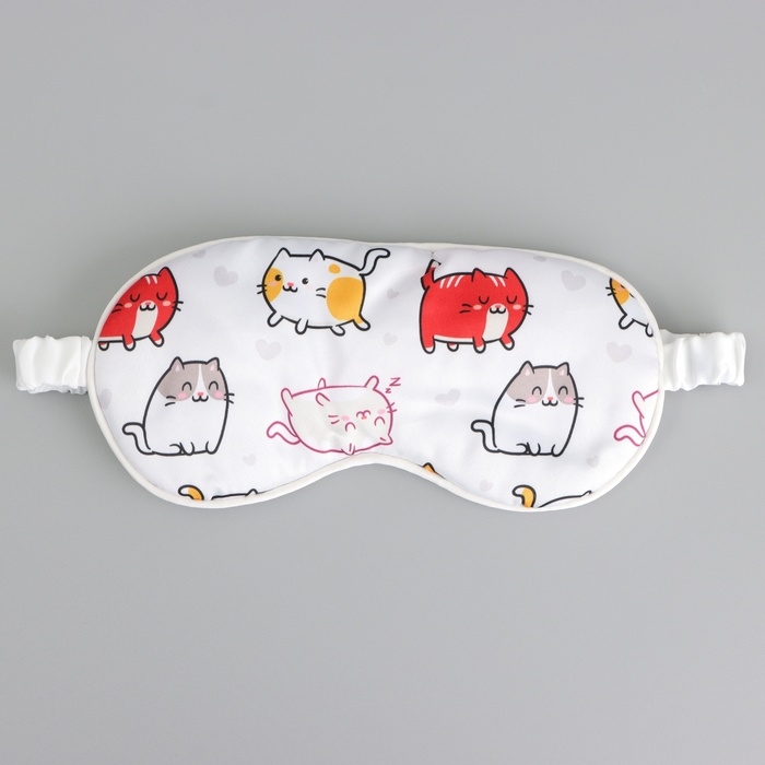 Маска шелковая для сна «Котички», 20 х 9 см, цвет белый