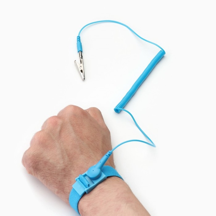 При использовании антистатического браслета электрический заряд не скапливается на теле и одежде человека, а притягивается токопроводящими волокнами и по шнуру отводится от рабочего места на резистор с шиной заземления.