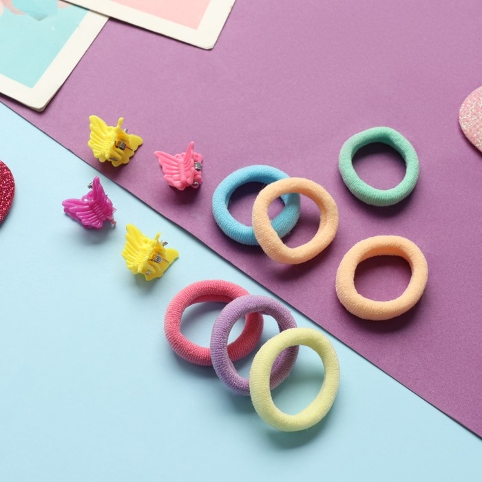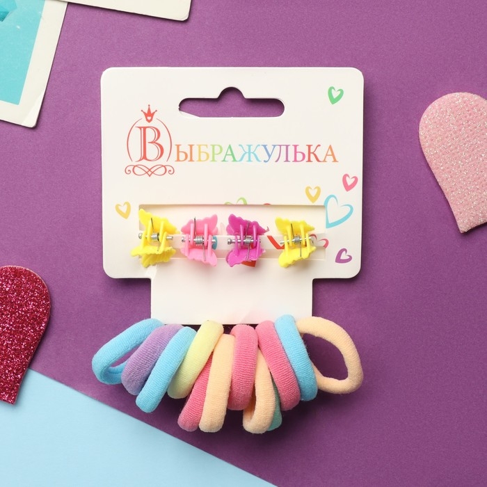 Набор для волос "Затейница колор" (12 резинок 2 см, 4 краба) бабочки