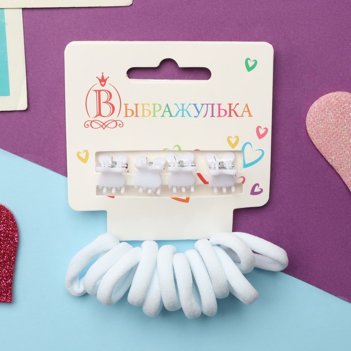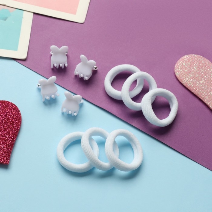 Набор для волос "Затейница" (12 резинок 2 см, 4 краба) ушки, белый