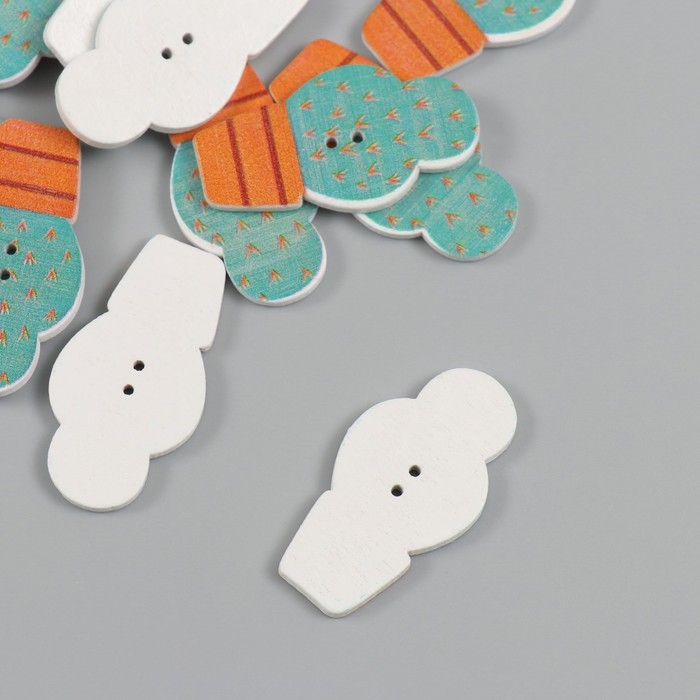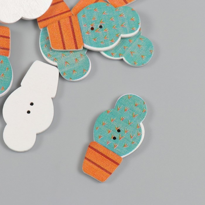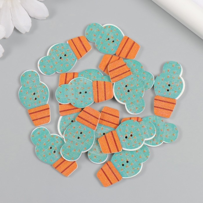 Пуговицы дерево для творчества 2 прокола "Кактус в горшке" набор 15 шт 1,9х3,3 см