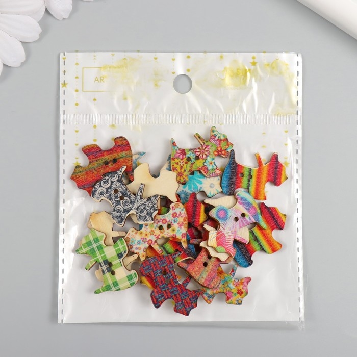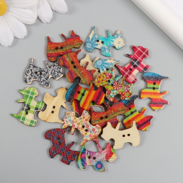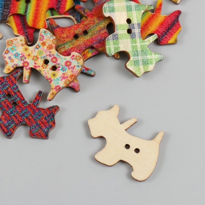 Пуговицы дерево для творчества 2 прокола "Терьер" набор 20 шт 2,8х2 см