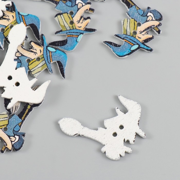 Пуговицы дерево для творчества 2 прокола "Ведьма на метле" набор 15 шт 3,5х2,5 см