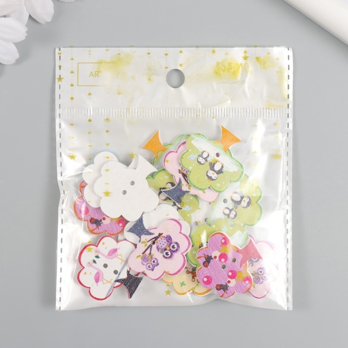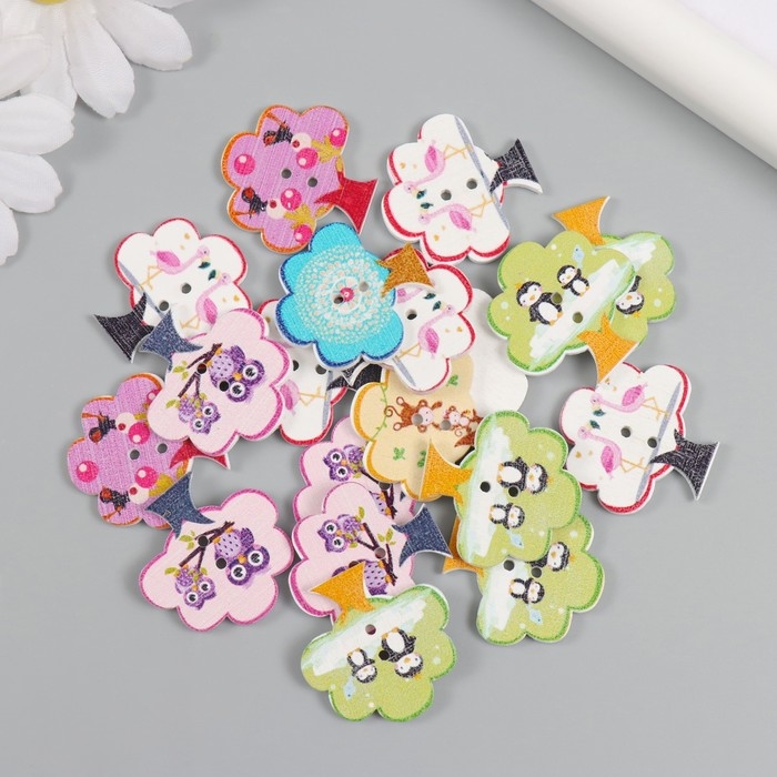 Пуговицы дерево для творчества 2 прокола "Деревце" набор 20 шт 2,8х2,8 см