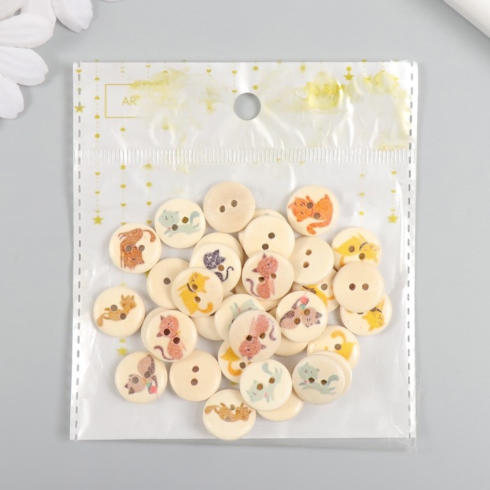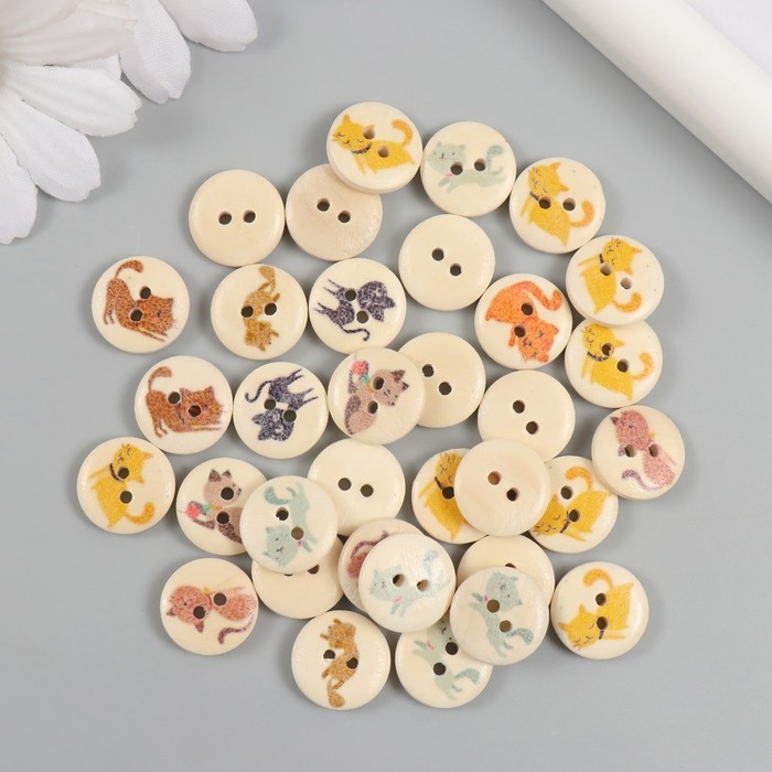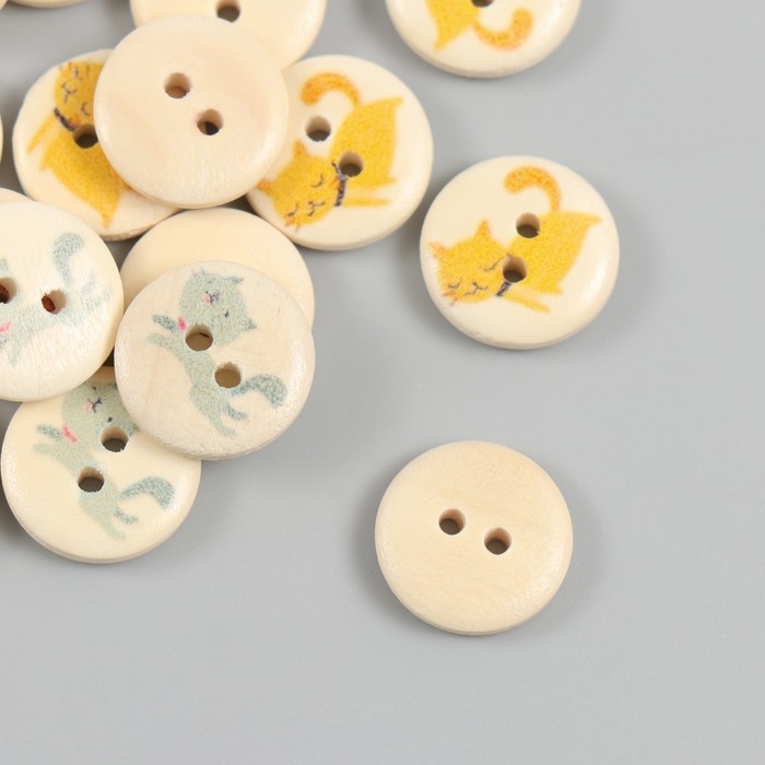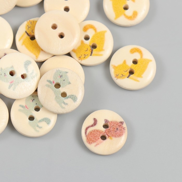 Пуговицы дерево для творчества 2 прокола "Котики" набор 40 шт 1,5х1,5х0,4 см
