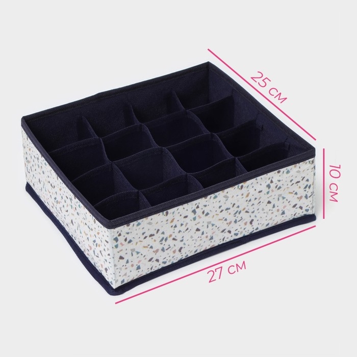 Органайзер для хранения белья Доляна «Тропики», 16 ячеек, 27×25×10 см, цвет синий