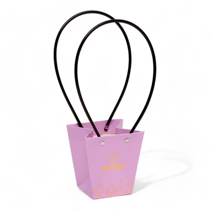 Сумка для цветов Лиловая "Здесь живет Любовь" влагостойкая 12x12-8x8-12.5 см