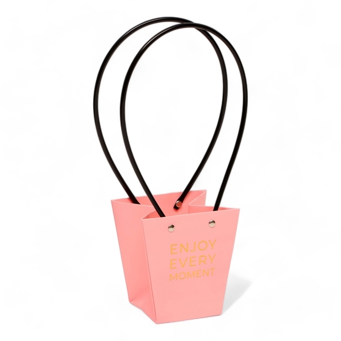 Сумка для цветов розовая Enjoy Every moment влагостойкая 12x12-8x8-12.5 см