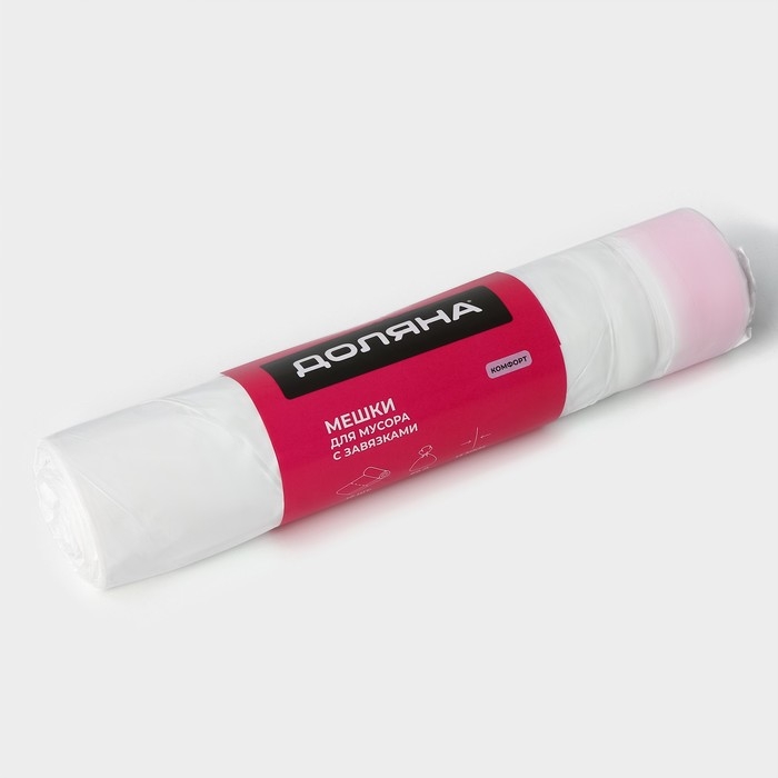 Мешки для мусора с завязками Доляна «Комфорт», 60 л, 13 мкм, 55×64 см, ПНД, 10 шт, цвет белый