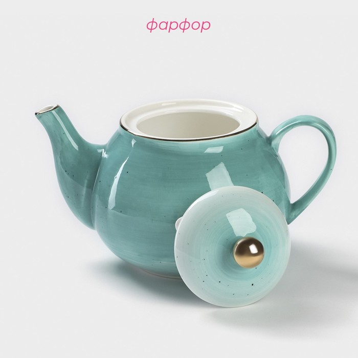 Чайник фарфоровый заварочный Доляна «Млечный путь», 900 мл, цвет бирюзовый
