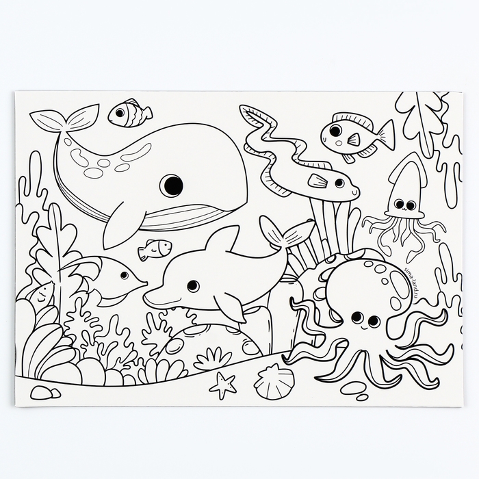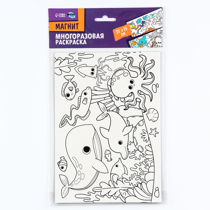 Магнит-раскраска многоразовая «Морские жители», 14,8 × 21 см