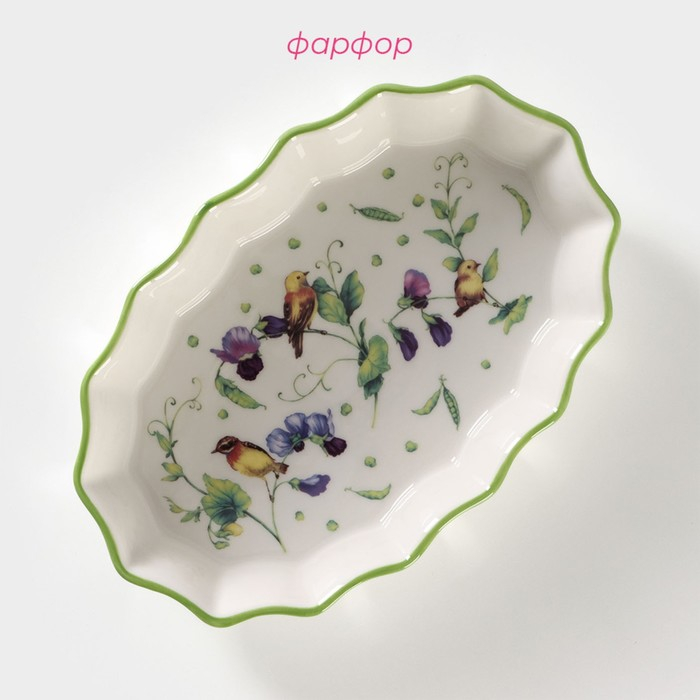 Форма для запекания фарфоровая Доляна «Зелёный сад», 19,5×12,5×3,5 см