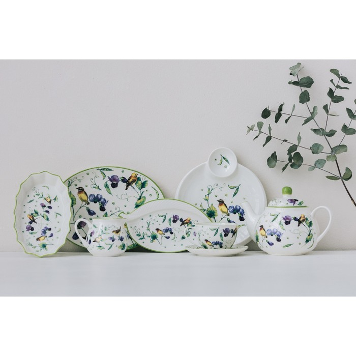 Посуда серии «Зелёный сад» от торговой марки Доляна обладает оригинальным «летним» дизайном. Изделия гармонично дополнят сервировку стола, а также прекрасно подойдут в качестве подарка. Посуда выполнена в приятных тонах, что позволит вписать её практически в любой интерьер.