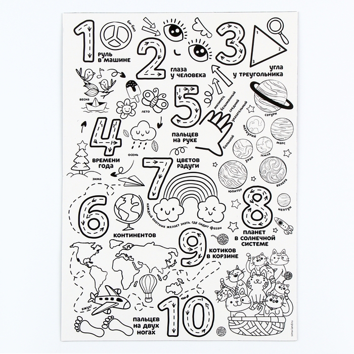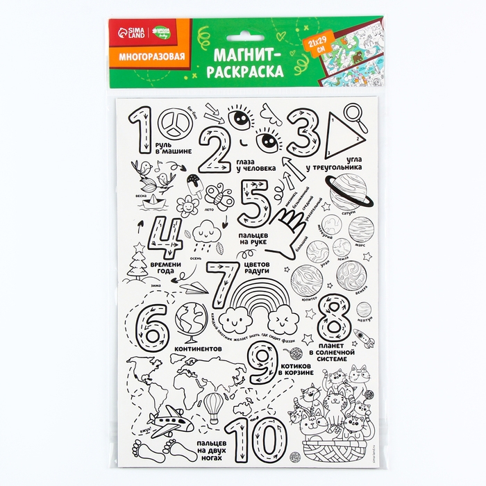 Магнит-раскраска многоразовая «Цифры», 21 × 29,7 см