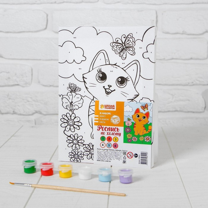 Картина по номерам для детей «Котёнок с бабочкой», 21 х 15 см