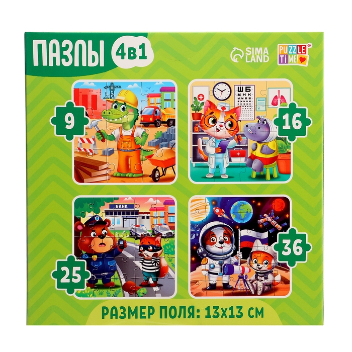 Пазлы 4 в 1 «Профессии», 86 деталей