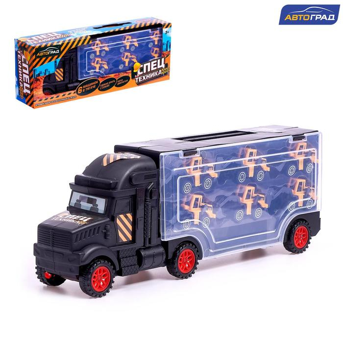 С грузовиком «Перевозчик» малыш почувствует себя настоящим строителем, ведь в наборе он найдёт 6 специальных машинок! Техника может двигаться, копать и транспортировать грузы, что позволит ребёнку придумать новые игровые сюжеты и познакомиться с новой профессией.