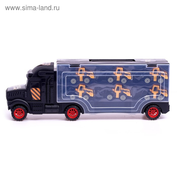 - Грузовик способен перевозить до 6 машинок масштабом 1:64 в своём кузове.