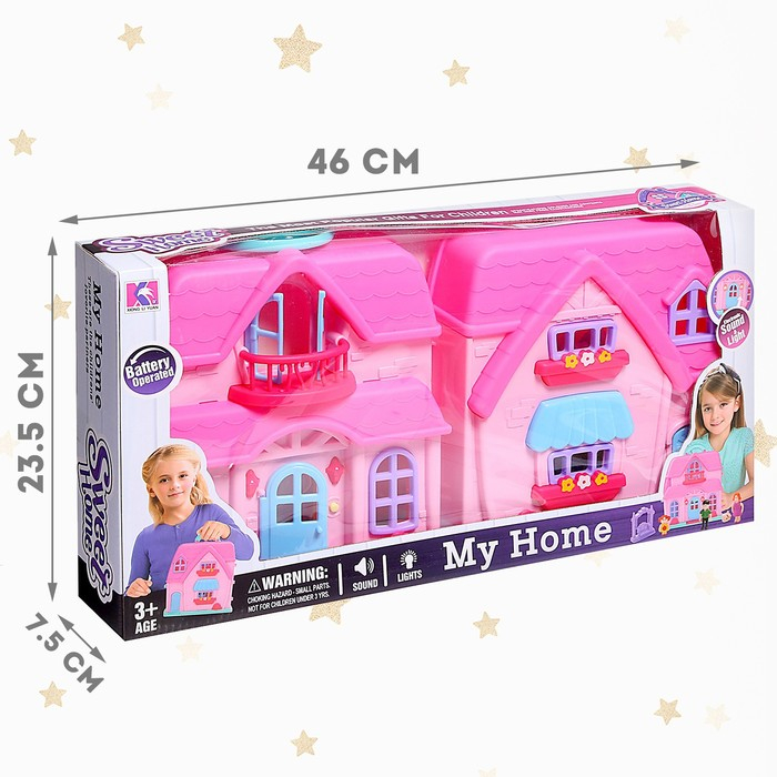 - Домик имеет звуковые (звонок в дверь и лай собаки), а также световые эффекты (фонарики у двери светятся). Это сделает игру увлекательнее и реалистичнее!