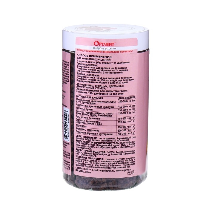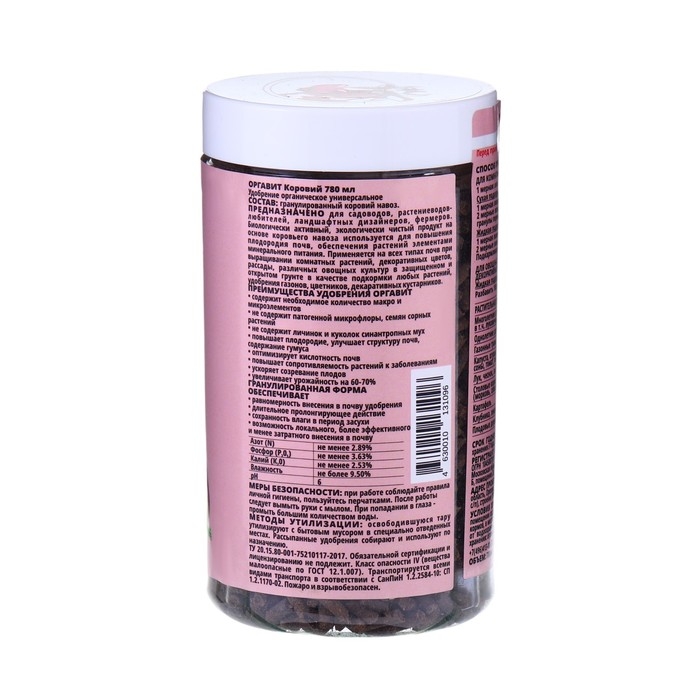 Удобрение гранулированное органическое Оргавит Коровий, 780 мл