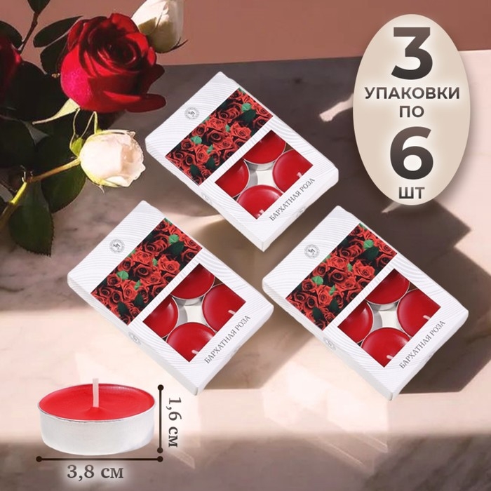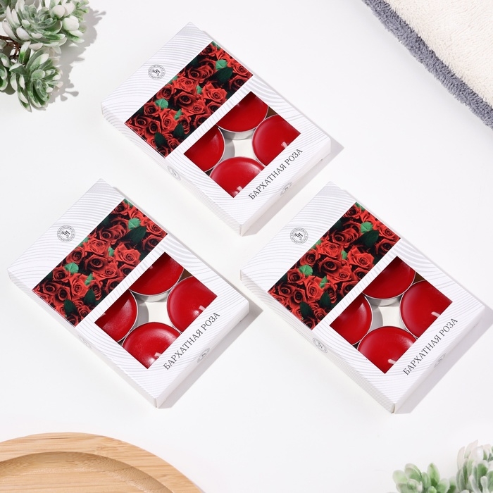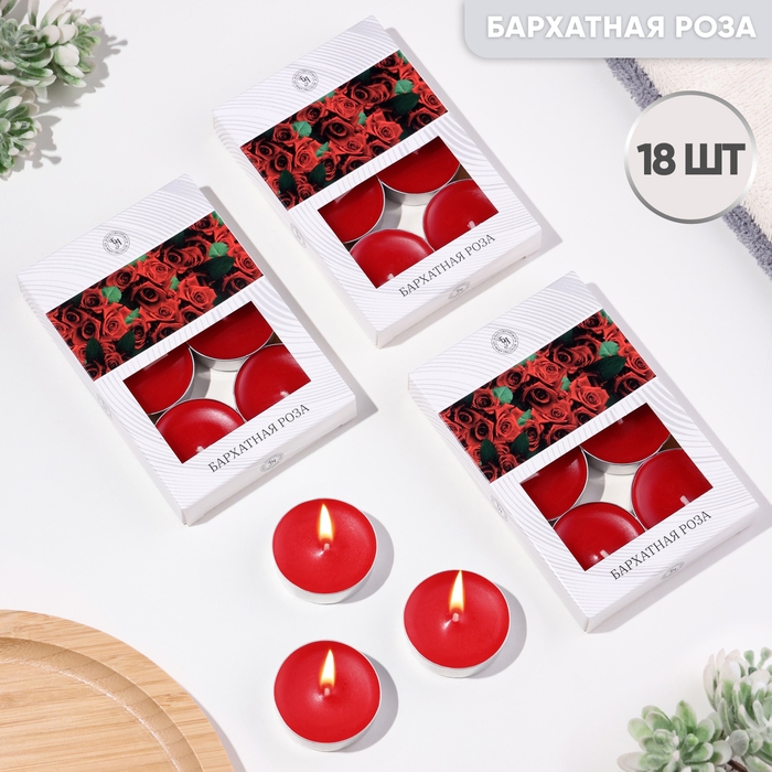 Свечи чайные ароматизированные "Бархатная роза" в подарочных коробках, 18 шт