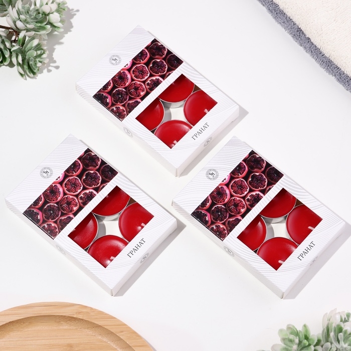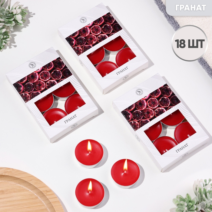 Свечи чайные ароматизированные "Гранат" в подарочных коробках, 18 шт